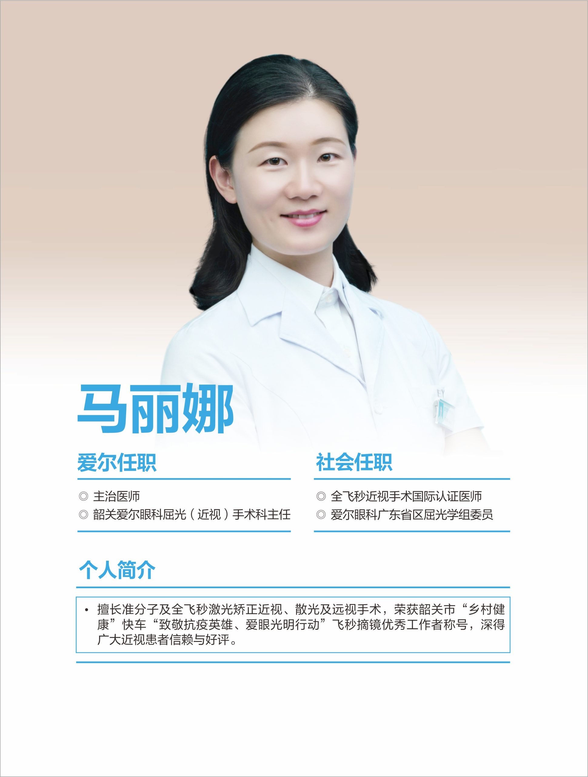屈光近視矯正中心是韶關愛爾眼科醫院有限公司的重點科室,由中國衛生行業標準《準分子激光角膜屈光手術質量控制》起草人、博士生導師王錚教授領銜,王愛琴副院長親自掛帥,醫師馬麗娜等人組成一支技術精湛的近視矯正團隊,全面開展各類屈光手術。該科室具備矯正近視的全解決能力,開展超10種近視術式:飛秒激光、ICL晶體植入術等,全面矯正1800度內近視以及600度內散光。